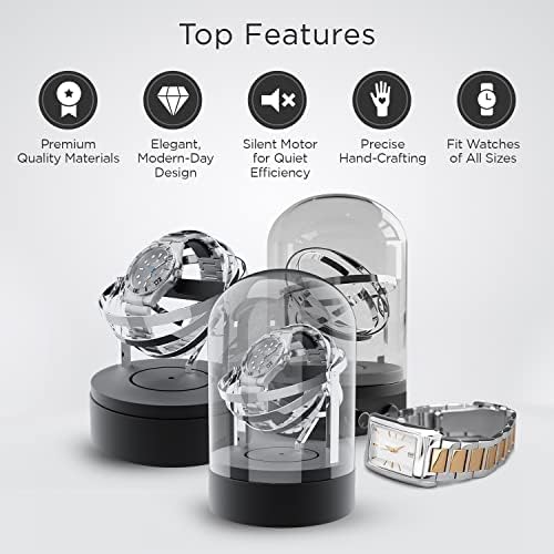 The good…<br />It looks great!I have one auto winding watch and looked forward to being able to rotate through my other watches as this automatically wound this one. It was easy to figure out how assemble, only having a base, an o-ring, watch mount and glass cover. My watch, a men’s Orient, fit perfectly and looked great on display.The bad…<br />I finally had time to set it up last night in my bedroom and ran into a problem after going to bed. It is noisy, so bad in fact that I was unable to get to sleep with it running. While they included an o-ring to cut down on vibration and sound magnification through the glass lid. It does nothing to cut down on the noise coming out the baseAnd the noisy…<br />I removed the watch and listened closely and heard what sounded like really loud motor bearings or other bearing. Taking the load of the watch off does not lessen the noise level.Placing the winder on a wood surface, like a bookcase shelf, or dresser allows the wood to carry and magnify the sounds as they travel down through the base and out through the wood. The pads on the bottom of the winder are not thick enough or sufficient to dampen noise traveling downward.I decided last night to return it and get a different winder. Unfortunately someone was really efficient at throwing away the box and packaging it came in. I am going to see if I can still return it.If not, I might take it apart, like the engineer I am and redesign it. Depending on what I find I might put a small processor in the base and use a stepper motor and better bearings instead of what they have. It might be fun to put a proximity detector on it and have it spin once and stop with the watch on display anytime it detects someone in front of it.Would I buy it again? Nope, I was in a hurry and didn’t read the reviews, I just went by looks.If they fixed the noise problem I would buy it in a New York minute, as it really makes my watch look good.