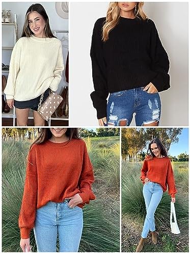 Womens Sweater Ribbed Knit Oversized Sweaters for Women Trendy Pullovers