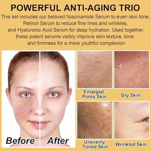 Directions:1.Cleanse skin and pat dry and toning. 2.Apply 3-5 drops of Retinol serum followed by 3-5 drops of Hyaluronic Acid in the evening. 3.Allow skin to absorb before using moisturizer. Use sunscreen daily.It can also be used on other areas of the eyes and neck.