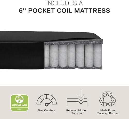 Let's not forget about the included futon mattress. Crafted with a clever 4-pad composition that includes a pocket coil layer.