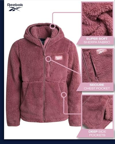 Reebok Women's Fleece Sweatshirt Jacket - Full Zip Sherpa Fur Hooded Jacket - Lightweight Teddy Coat for Women (S-XL)
