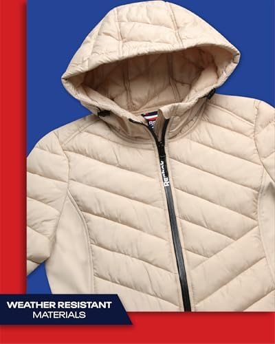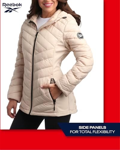 Reebok Women's Jacket - Lightweight Quilted Puffer Parka Coat with Flex Stretch Panels – Casual Jacket for Women (S-XL)
