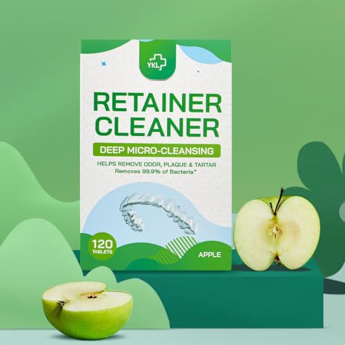 YKL Retainer Cleaner & Denture Cleaning Tablets for Invisalign Cleaner, Fresh Apple Flavor (120 Count)