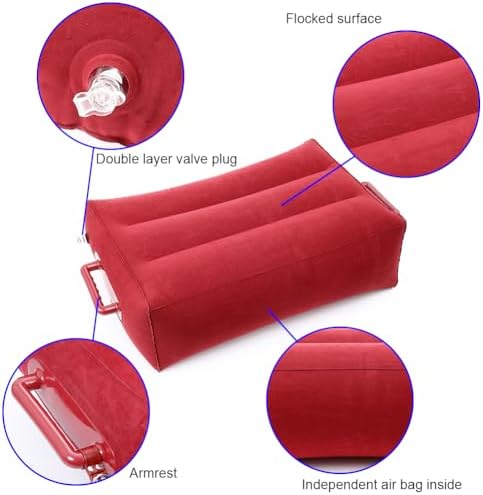 This inflatable pillow offers more comfort for some positions and is easy to set up with just a few deep breaths of air.It has a standard pool inflatable valve that you have to squeeze to let air in and out.The surface has a velvet like feel that is fairly soft but there are some scratchy feeling seams on the edges.The orange color I thought was strange at first but is a fun pop of color.I thought the handles would be kind of gimmicky but have come in handy for positioning of the pillow and better grip.