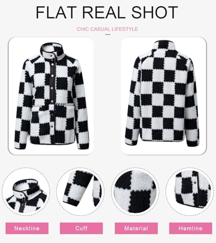 SHEWIN Jackets For Women Causal Sherpa Fall Jacket Loose Button Down Plaid Winter Coats