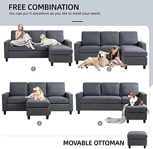 I have had this couch for almost 2 years and I had it in the L shape. I have to admit, for a family of 3 it's super uncomfortable in that shape and all you can do is sit with more than 1 person.That all changed today! I've been looking at modular couches thinking about buying new but I realized this couch has the dame amount of pieces. I took the feet off (no more toys getting stuck!) And pushed the two small squares against the long one to make one big square couch. It's 100% more comfortable and perfect for 2 small children! Plus I saved $700!