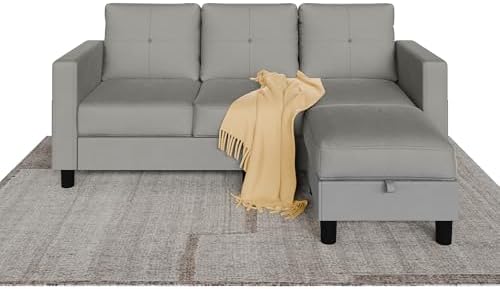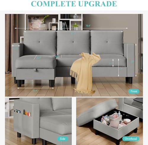 Shintenchi Convertible Sectional Sofa Couch, Modern Linen Fabric L-Shaped, 3-Seat Sofa Sectional with Storage Function Ottoman/Armrest Reversible Chaise for Living Room and Small Space (Light Gray)