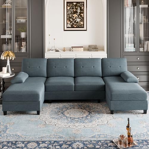The U-shaped sofa has a simple and elegant design. Tight sewing details and linen fabric and solid wood construction ensure that this combination sofa is structurally stable and of great quality. The high-density foam padding in the cushions and the pocketed coil spring system provide a comfortable sitting experience.