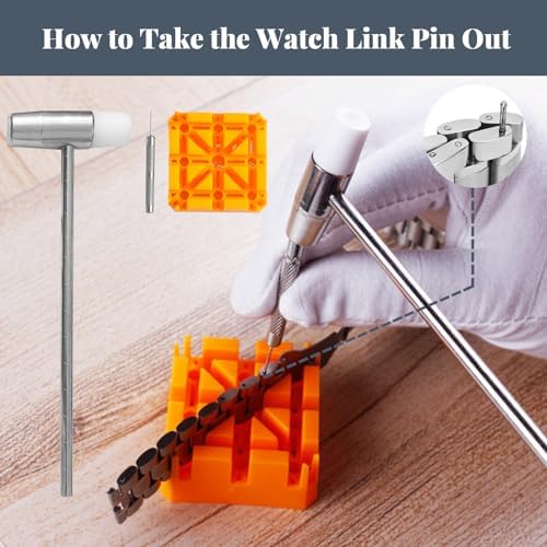 The watch band holder is used to catch the watch band, use the punch pin to hold the watch band pin and hit it with a hammer (this method is suitable for more solid pins).
