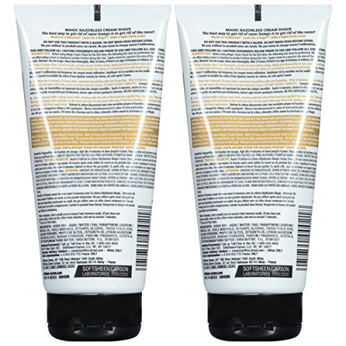 Our Razorless Cream Shave has been formulated to help stop razor bumps and give a closer shave than a razor to all body parts. This hair removal cream features a light fresh scent and works in 4 minutes to last for 4 days. Before using Magic Cream Shave for the first time, the following test must be performed. Wait at least 36 hours after using a razor or depilatory product before doing this test. Apply cream to a quarter size area of body hair. Wait 4 minutes before removing. Do not scrape. Rinse area thoroughly. After 24 hours, if there is no sign of irritation or redness follow directions on product. The more you use Magic Shave the better it works. We believe in beauty without compromise. IMPORTANT: Contains Thioglycolate. If skin is inflamed or has abrasions, sores or pustules, consult a dermatologist before use. Conduct sensitivity test before use. Wait 36 hours after using any razor or shaving powder before using this product. Do not use with any after shave product containing alcohol. This is a safety summary. Read all product labeling and instructions completely.