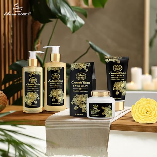 Spa Gifts for Women, Gift Set for Women Enchanted Orchid Scent, Home Spa Kit with Bubble Bath, Body Lotion, Bath Bomb, Bath Salt, Spa Gift Baskets for Women, Birthday Gifts for Women