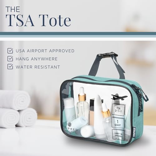 Toiletry Bag Kit Set: Hanging Travel Toiletry Bag + 311 TSA Cosmetic Liquid Bag + Ultralight Accessory Organizer Pouch (Dusty Teal)