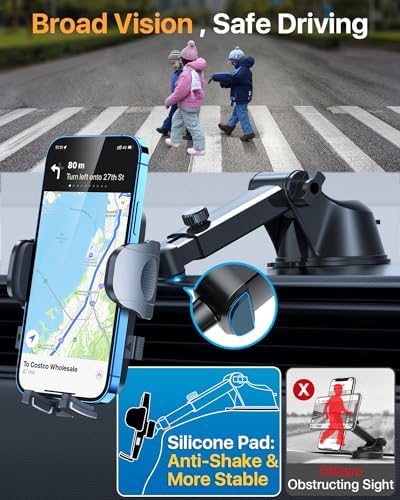 0.79" clamp arm depth with silicone airbag for stronger grip, better protection. The car phone holder mount.