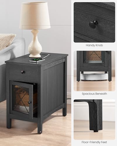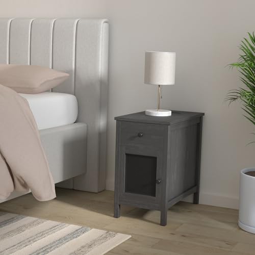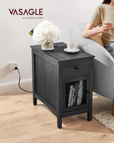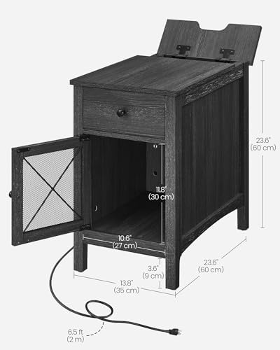 The black mesh door gives this end table a modern, industrial look while making it easy to find your items.
