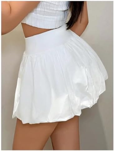 Verdusa Women's Pleated Bubble Skirt Y2K Elastic High Waisted Puffy Skorts Shorts