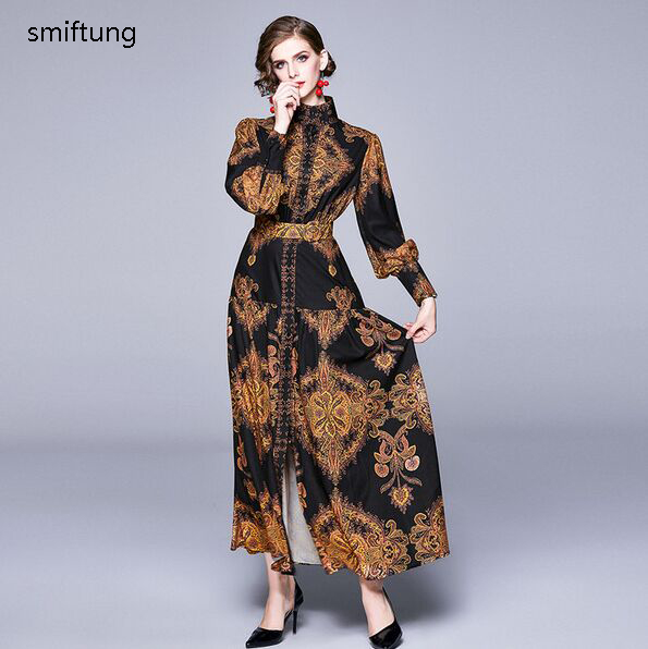 wholesmiftung spring dress / Vintage long casual dress / court style printing long sleeve dress