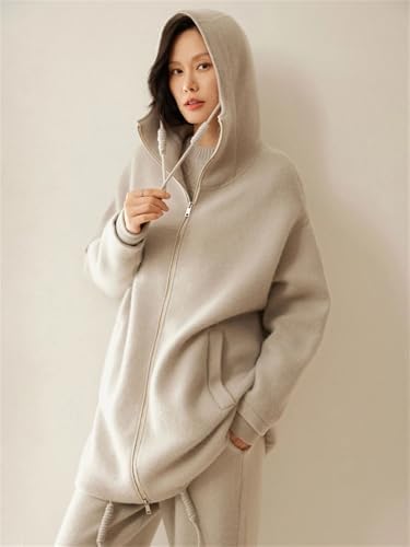 Percentage Of Material:95% AboveMaterial:CASHMEREMaterial Composition:CashmereRelease Date:Autumn 2024Craft Of Weaving:KnitYarn Thickness:Fine YarnSeason:Autumn/WinterAge:MIDDLE AGEThickness:ThickClosure Type:ZipperPattern Type:SolidGender:WOMENSleeve Length(Cm):FullStyle:CasualDecoration:Lace UpSleeve Style:RegularCollar:HoodedClothing Length:Long(26+Inch)Elasticity:Slight StrechFit Type:LOOSE FITOrigin:Mainland China