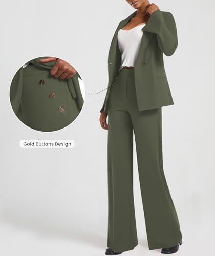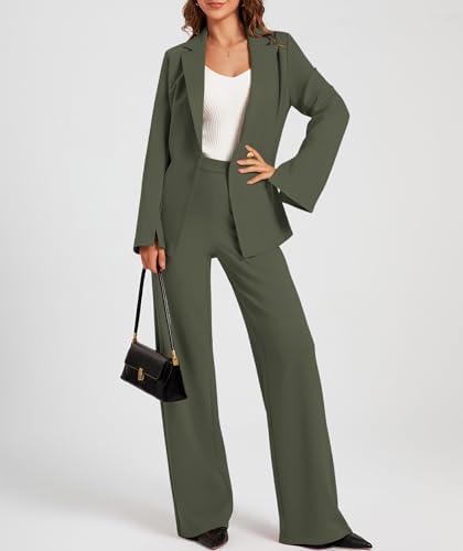 Women's 2 Piece Blazer Outfits Business Casual Asymmetrical Jacket Button Wide Leg Pants Dressy Suit Sets