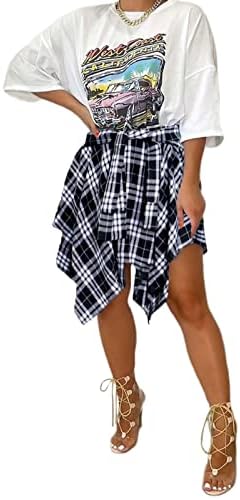 Women's Plaid Skorts Skirts - High Waisted Tie Front Pleated Summer Asymmetrical Skirt with Shorts