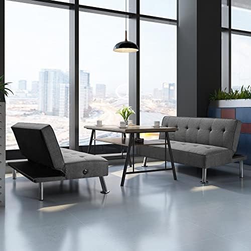 Functionalityand aesthetics meet harmoniously in this convertible futon bed. It cannot only provide a comfortable platform bed for 2 guests to sleep on,but it’s also a decent sofa and lounge for 3 adults in your home orapartment. This futon is made of wear-resistant polyester fabricupholstery, soft foam fills and stout chrome-plated legs, which caneasily hold up to 350kg/772lb. The two handy side-mounted USB portsoffer even more convenience to charge your electronics without leavingthe comfortable seat. Simple assembly is needed.